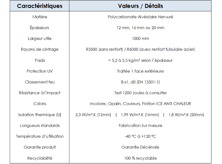 en Polycarbonate Nervuré Alvéolaire